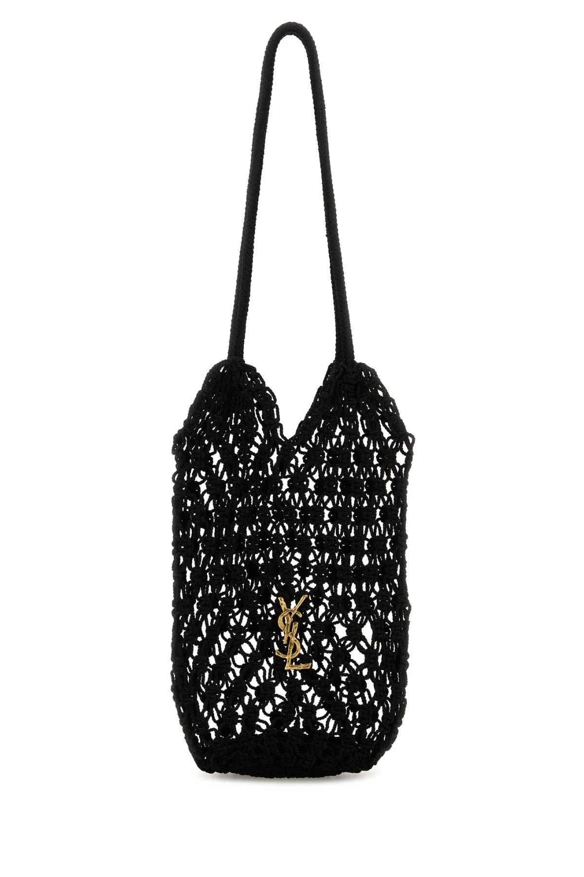 Saint Laurent Women Black Mesh Large Cassandre Bucket Bag