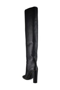 Boots Saint Laurent model 76 in black leather. Decorative gold studs all around. Thick 11 cm high heel. Pointed toe. Leather insole and outsole. 100% calf leather. Made in Italy. Size Type: IT SKU: Bottes76CuirNoir Our Products Are 100% Genuine. In All Cases We Stand By The Authenticity Of Every Product Sold On Our Site. All sales are final and we only accept returns for quality issue. Buyer is responsible for any import tax/duty if applicable.