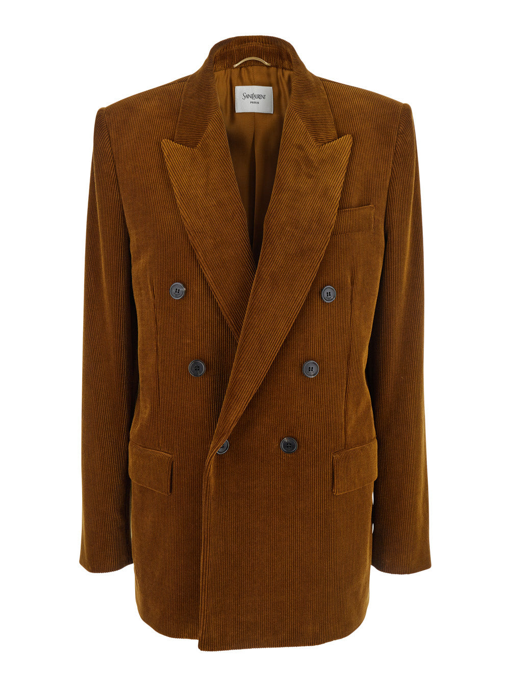 Saint Laurent Women Brown Double-Breasted Jacket With Notched Revers And In Corduroy Woman