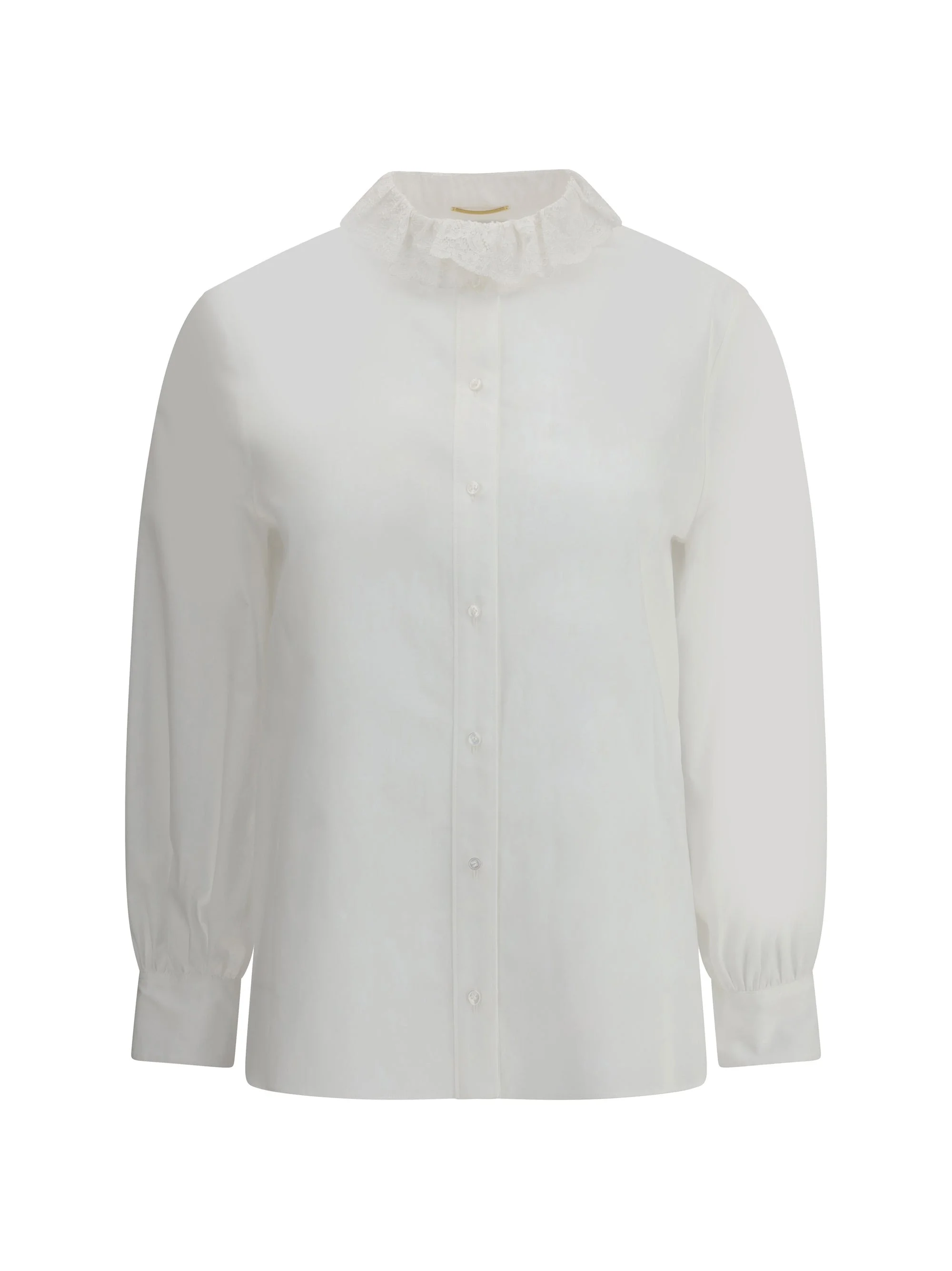 Saint Laurent's cotton poplin Shirt combines sartorial rigor and romantic details in a sophisticated balance. Featuring a front button closure, it features a delicate Pierrot collar trimmed with lace that adds a feminine, retro touch. Beveled cuffs with single-button closure and curved hem complete the design with discreet elegance. A garment with a bold and refined style, perfect for adding personality to classic or contemporary looks. Size Type: FR SKU: 842627Y7K369601 Our Products Are 100% Genuine. In All Cases We Stand By The Authenticity Of Every Product Sold On Our Site. All sales are final and we only accept returns for quality issue. Buyer is responsible for any import tax/duty if applicable.