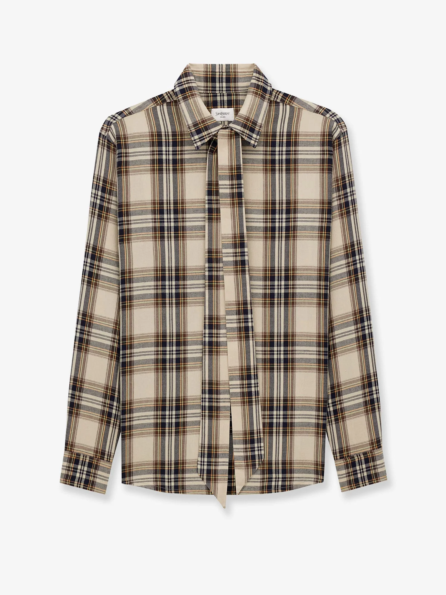 Saint Laurent Women Cotton Tartan Lavalliere Shirt