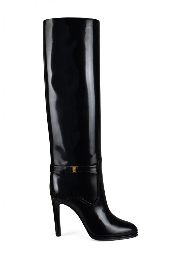 <p>Saint Laurent Diane model boots in black shiny leather. Ankle strap with golden cassandre buckle. Almond toe. Heel height: 11 cm. 100% leather. Made in Italy. </p> Size Type: IT SKU: 711188AAAPI1000 Our Products Are 100% Genuine. In All Cases We Stand By The Authenticity Of Every Product Sold On Our Site. All sales are final and we only accept returns for quality issue. Buyer is responsible for any import tax/duty if applicable.
