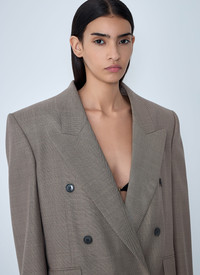 Double-breasted wool suit jacket Beige