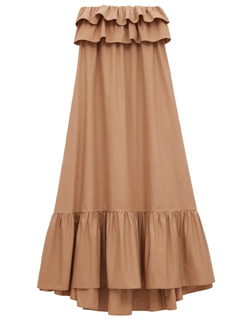 Strapless ruffled cotton-gabardine maxi dress Beige