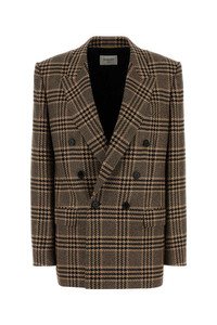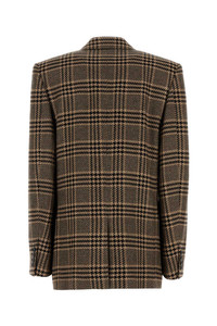 Double-breasted checked silk and cashmere-blend blazer Brown
