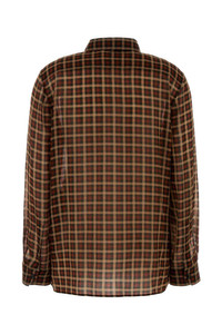 Pussy-bow checked wool shirt Brown