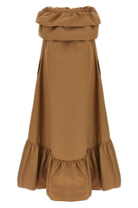 Strapless ruffled cotton-gabardine maxi dress Beige