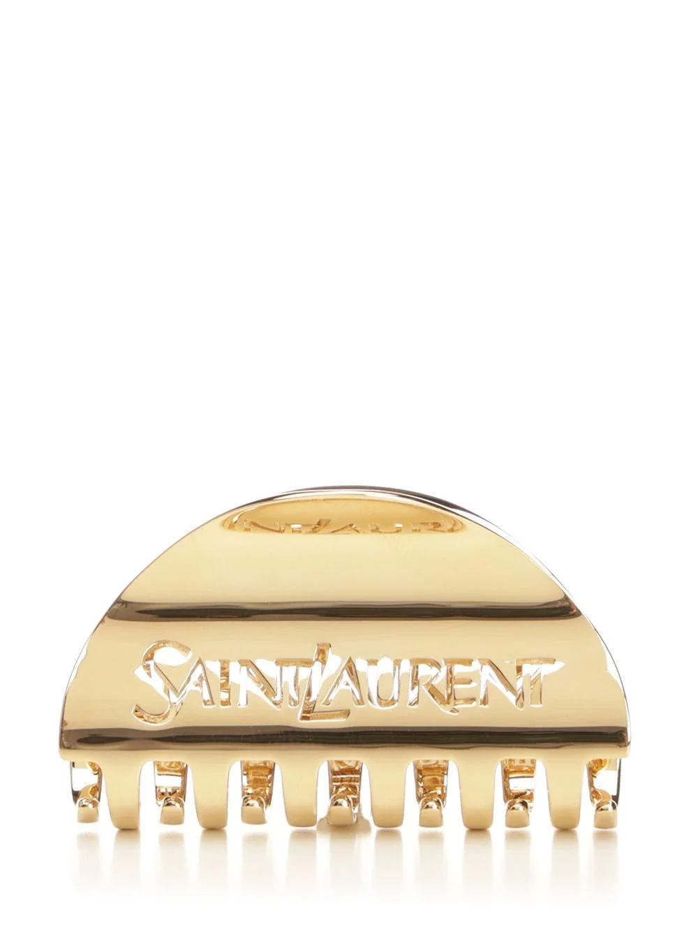 Saint Laurent crescent hair clip with engraved signature, spring hinge closure. BRASS Made in: IT SKU: 820845Y15008030 Our Products Are 100% Genuine. In All Cases We Stand By The Authenticity Of Every Product Sold On Our Site. All sales are final and we only accept returns for quality issue. Buyer is responsible for any import tax/duty if applicable.