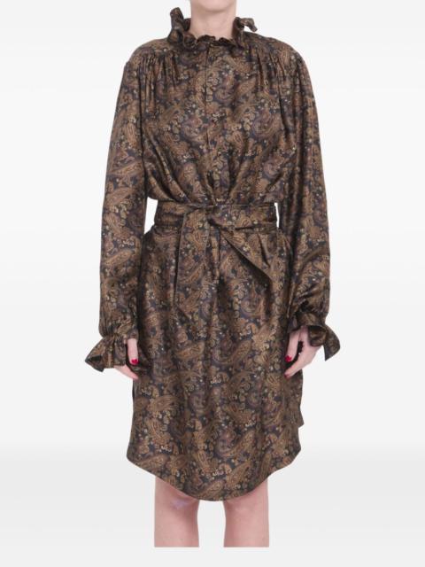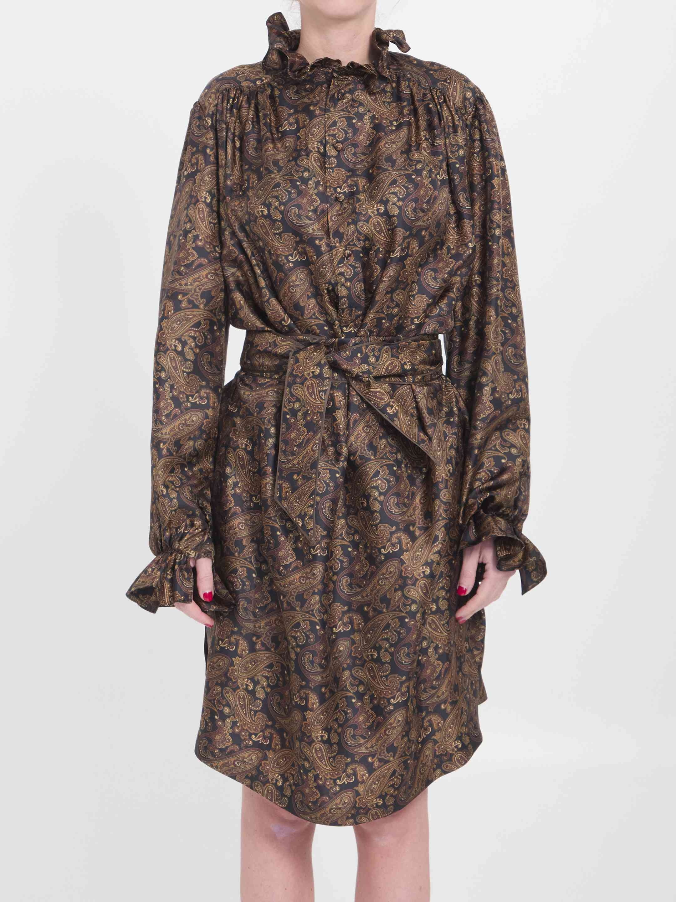 Knee-length dress in multicolor paisley silk twill. It features a frilled stand collar, front closure with fabric-covered buttons, long poet sleeves with ruffled cuffs and matching fabric-covered buttons, a removable waist belt, gathered yoke at the back, and side slits at the hem of the skirt. The model is 181cm tall and wears a size FR 36. Size nationality: FR Composition:100% silk Size Type: FR SKU: 828304y6k904775 Our Products Are 100% Genuine. In All Cases We Stand By The Authenticity Of Every Product Sold On Our Site. All sales are final and we only accept returns for quality issue. Buyer is responsible for any import tax/duty if applicable.