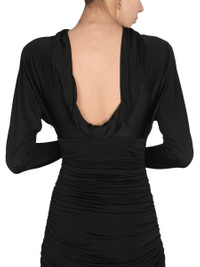 cowl back dress in lurex jersey