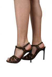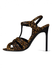 <p>Tribute Saint Laurent sandals in foal. Leopard print. Crisscrossing, adjustable ankle straps with Saint Laurent Paris engraved buckle. Heel height: 10.5 cm. Leather sole. Made in Italy. </p> Size Type: IT SKU: 6206732PM002094 Our Products Are 100% Genuine. In All Cases We Stand By The Authenticity Of Every Product Sold On Our Site. All sales are final and we only accept returns for quality issue. Buyer is responsible for any import tax/duty if applicable.