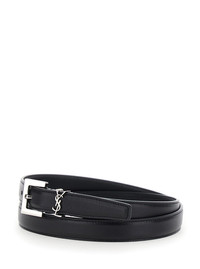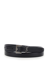 monogramme belt with square buckle in grained leather