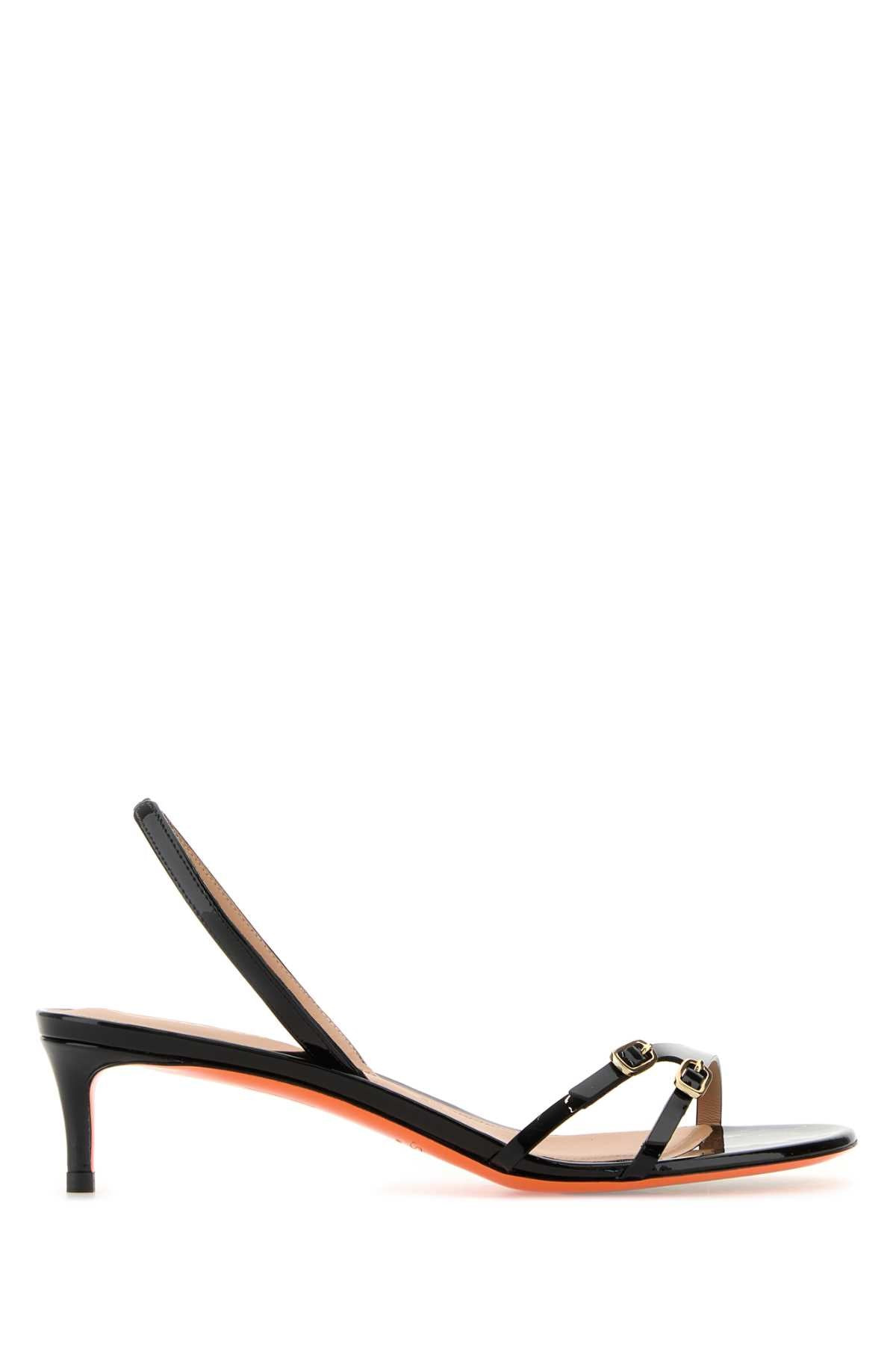 Women's black patent leather mid-heel sandal