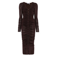 coffee brown front hook and eye fastening cut-out detailing V-neck long sleeves MADE IN:ChinaMATERIAL:Lining Composition Polyamide: 43.0%, Outer Composition Viscose: 100.0%, Lining Composition Viscose: 55.0%, Elastane: 2.0%COLOR:BROWN SKU: PF25098MBRBROWN Our Products Are 100% Genuine. In All Cases We Stand By The Authenticity Of Every Product Sold On Our Site. All sales are final and we only accept returns for quality issue. Buyer is responsible for any import tax/duty if applicable.