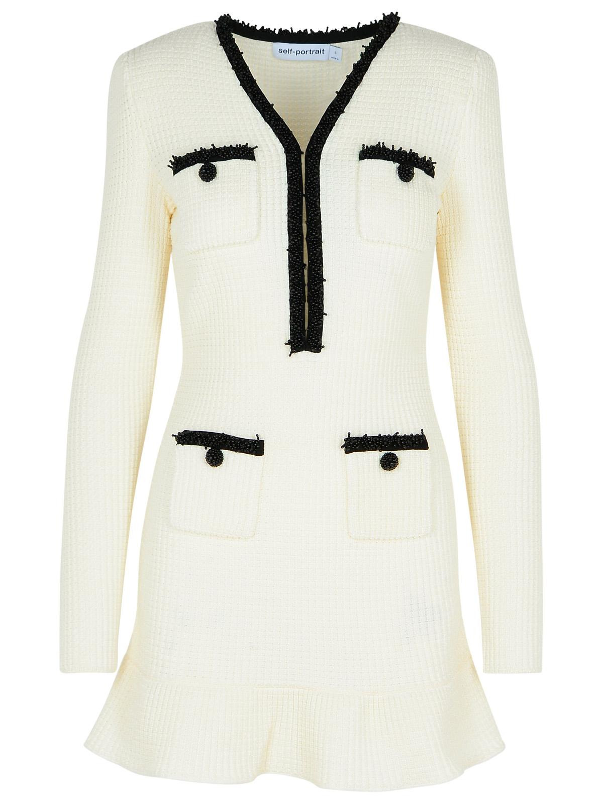Self Portrait 'Waffle' Dress In White Polyester Blend Women