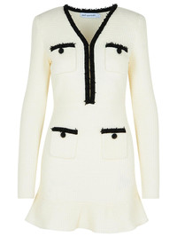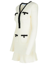 White Pearl Trim Knit Mini Dress