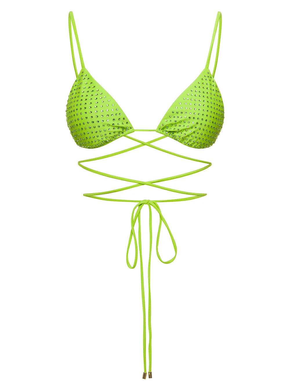 Bikini top Spaghetti straps Triangle cup Wrap around tie up laces All-over crystal embellishment Green Polyamide Regular fit SKU: RS23404GREEN Our Products Are 100% Genuine. In All Cases We Stand By The Authenticity Of Every Product Sold On Our Site. All sales are final and we only accept returns for quality issue. Buyer is responsible for any import tax/duty if applicable.