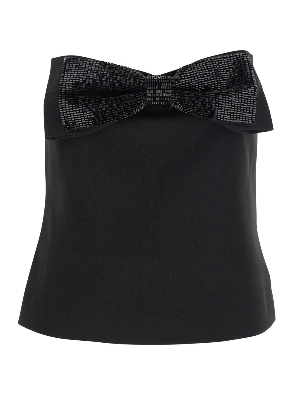 Self-Portrait Women Black Sleeveless Top With Bandeau Neckline In Tech Fabric Woman