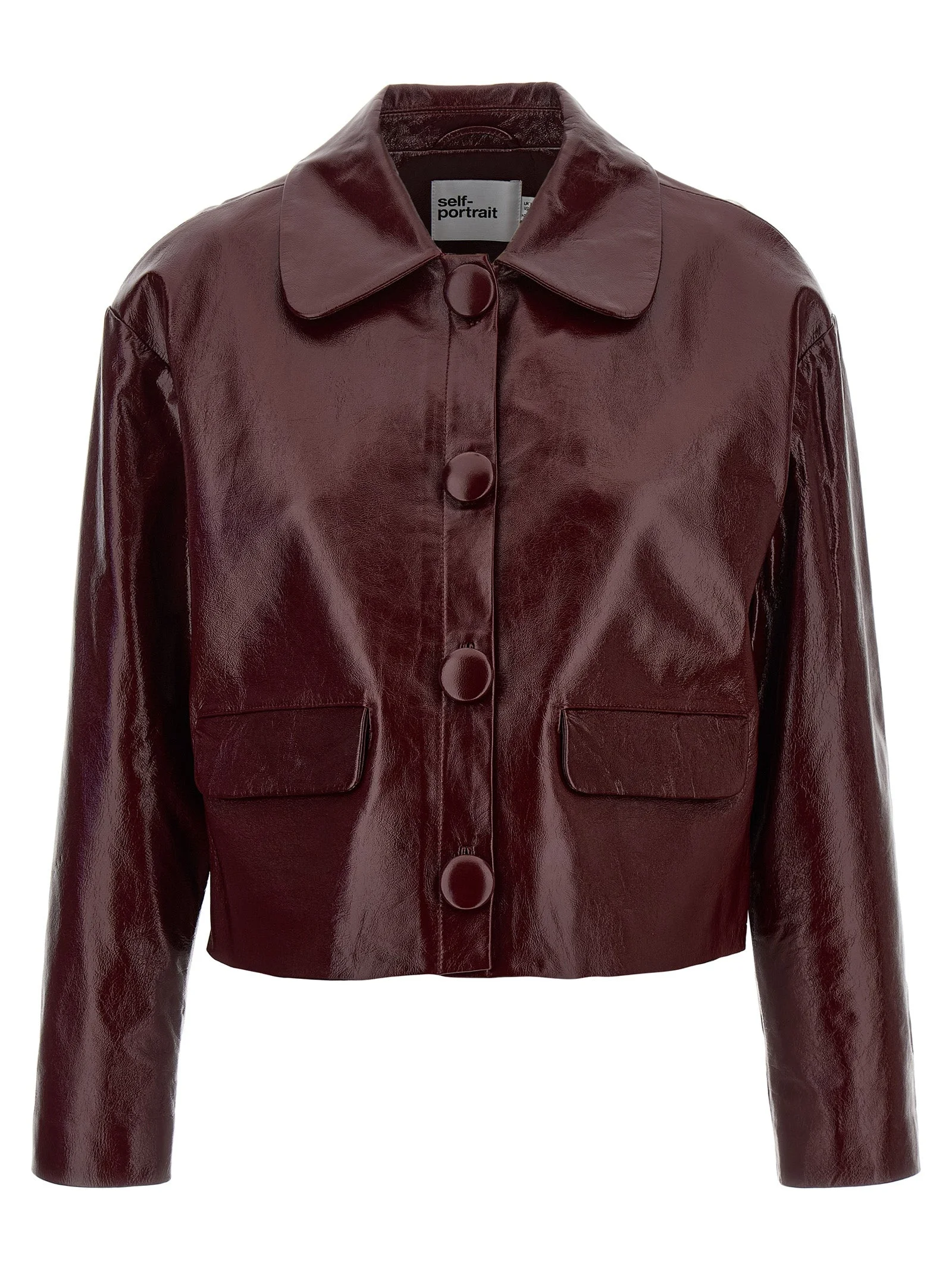 Crop jacket in craque shiny leather with shirt collar, front button closure, flap pockets, long sleeves with dropped shoulders. relaxed fit - UK SIZE 100% leather SKU: PF25091JBUBURGUNDY Our Products Are 100% Genuine. In All Cases We Stand By The Authenticity Of Every Product Sold On Our Site. All sales are final and we only accept returns for quality issue. Buyer is responsible for any import tax/duty if applicable.