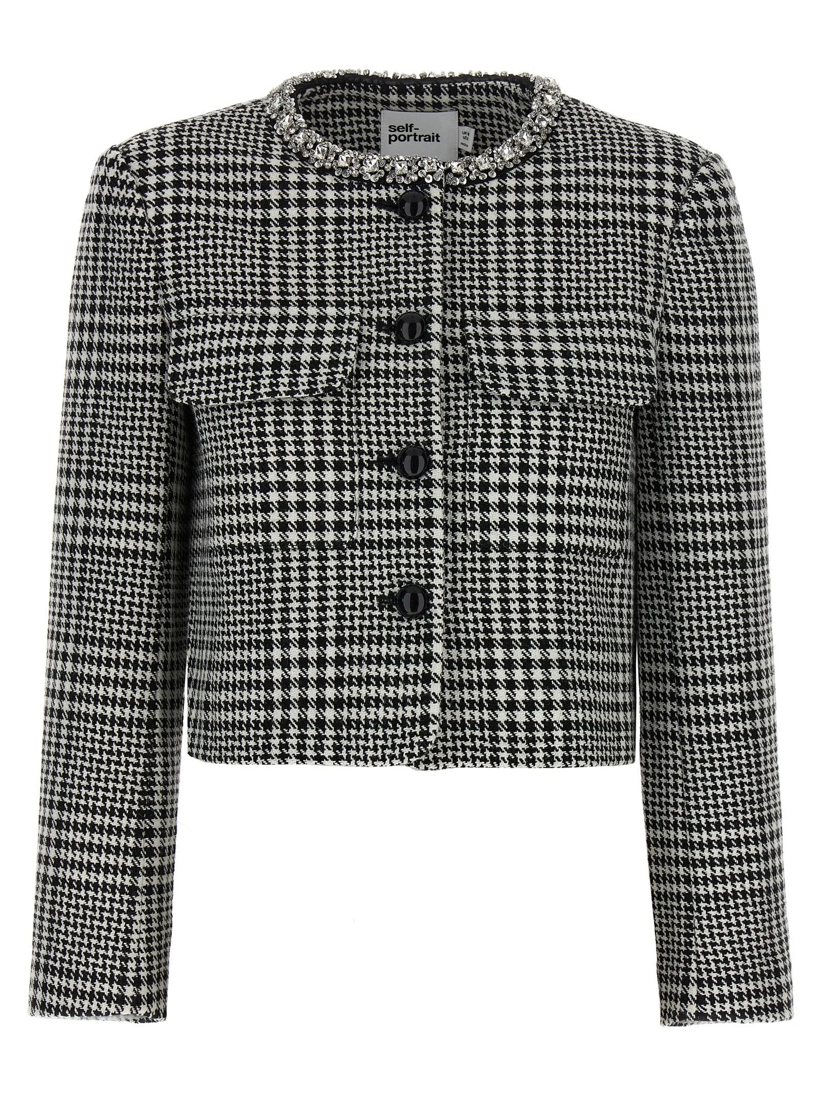 Self Portrait Women 'Houndstooth Crystal Trim' Blazer