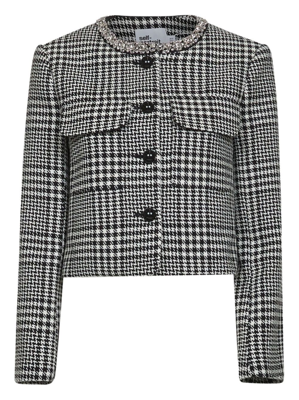 DESCRIPTION ::Gray SELF PORTRAIT jacket with houndstooth pattern, flap chest pockets, and a front button closure.MADE IN::ChinaCOLOR::MULTICOLOR SKU: PF25111JBLACKANDWHITEMULTICOLOR Our Products Are 100% Genuine. In All Cases We Stand By The Authenticity Of Every Product Sold On Our Site. All sales are final and we only accept returns for quality issue. Buyer is responsible for any import tax/duty if applicable.