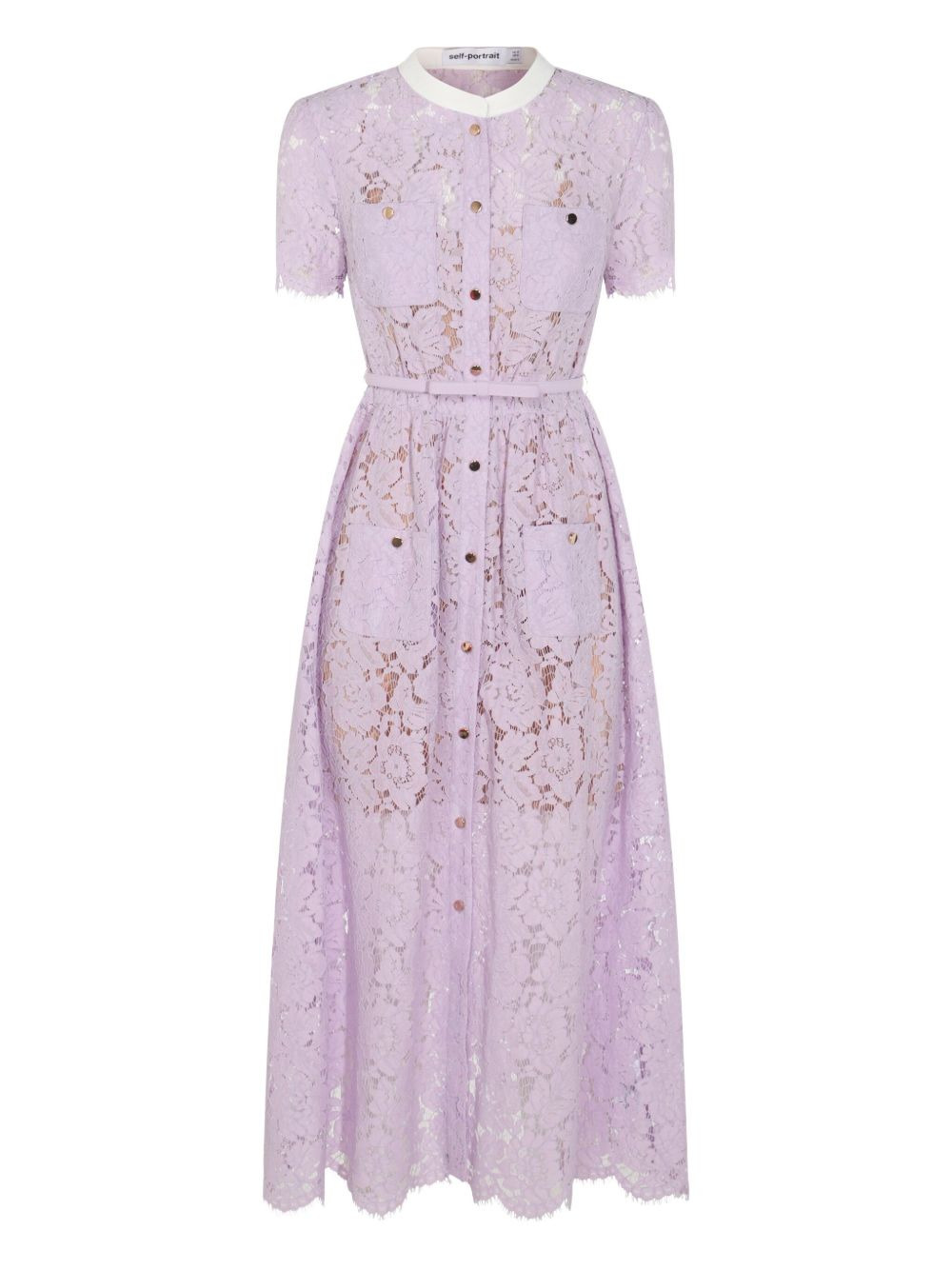 DESCRIPTION ::SELF PORTRAIT purple midi dress with lace embroidery, a crew neck, a flared hem, patch pockets, and a front button closure.MADE IN::ChinaCOLOR::LILAC SKU: PF25006MLILACLILAC Our Products Are 100% Genuine. In All Cases We Stand By The Authenticity Of Every Product Sold On Our Site. All sales are final and we only accept returns for quality issue. Buyer is responsible for any import tax/duty if applicable.