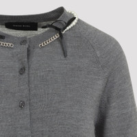 Simone Rocha Classic Grey Merino Wool and Silk Cardigan. Crafted from grey merino wool and silk, round neckline, black bows, chain and pearls embellishment, front button fastening, long raglan sleeves, fine ribbed edges. Wool | 75%MERINO WOOL 25%SILK Size Type: INT SKU: KMK13B0647Grey Our Products Are 100% Genuine. In All Cases We Stand By The Authenticity Of Every Product Sold On Our Site. All sales are final and we only accept returns for quality issue. Buyer is responsible for any import tax/duty if applicable.