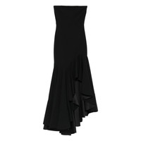 black strapless neckline asymmetrical ruffled hem fitted bodice MADE IN:ChinaMATERIAL:Polyester: 95.0%, Elastane: 5.0%COLOR:BLACK SKU: OS45031BLACK Our Products Are 100% Genuine. In All Cases We Stand By The Authenticity Of Every Product Sold On Our Site. All sales are final and we only accept returns for quality issue. Buyer is responsible for any import tax/duty if applicable.