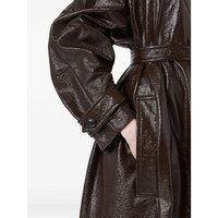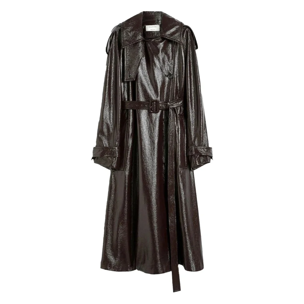 Long trench coat with patent leather effect - RUNWAY - COFFEE