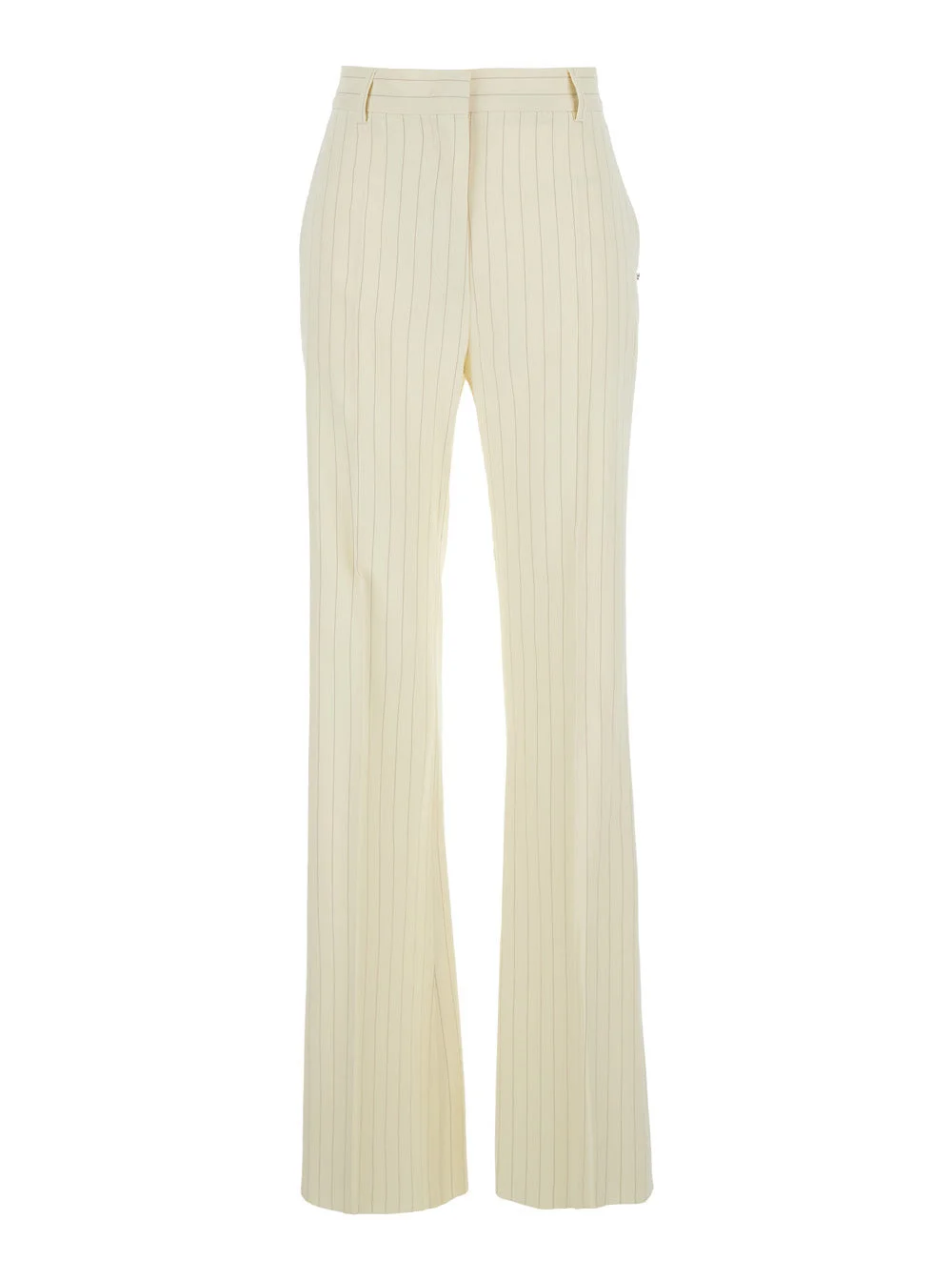 Sportmax Women Cream Flared Pants With Pinstripe Motif In Viscose Blend Woman