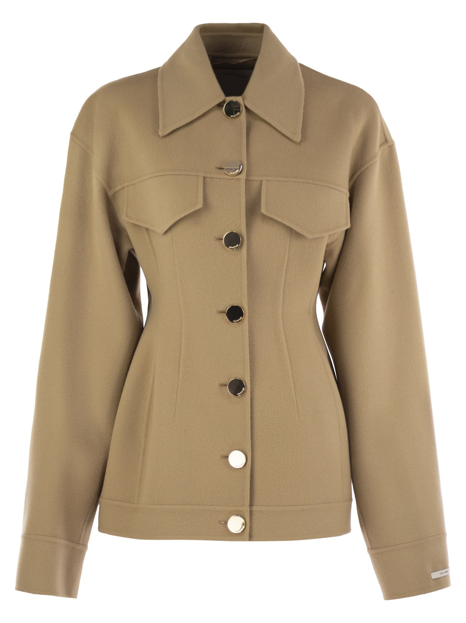 Fitted caban made of pure wool double, with deep darts and denim-inspired details. Closure with large mirror metal buttons with engraved logo. - Pure wool double drap caban - Tight fit on the bust and loose fit on the sleeves - Shirt collar - Visible metal button fastening - Dropped shoulder with yoke at front and back - Tight fit DESIGNER ID: 2522086011600 001 100% Virgin wool Size Type: IT SKU: 2522086011600001 Our Products Are 100% Genuine. In All Cases We Stand By The Authenticity Of Every Product Sold On Our Site. All sales are final and we only accept returns for quality issue. Buyer is responsible for any import tax/duty if applicable.