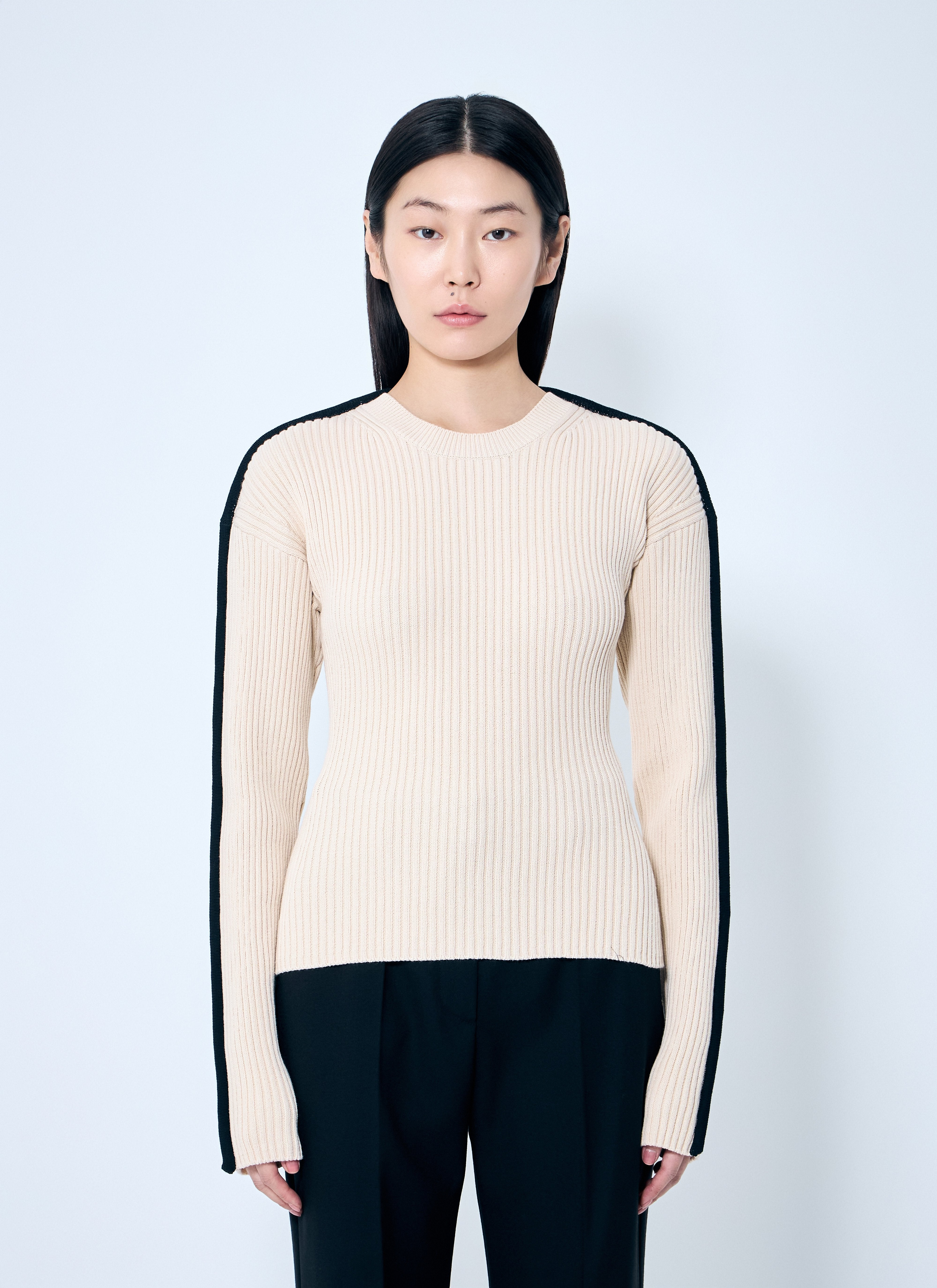 Stretch fitted sweater in ribbed cotton blend. Crewneck Long sleeves Contrast stripe 68% Cotton, 32% Polyester. Dry clean 2512361051670 001 SKU: 2512361051670001 Our Products Are 100% Genuine. In All Cases We Stand By The Authenticity Of Every Product Sold On Our Site. All sales are final and we only accept returns for quality issue. Buyer is responsible for any import tax/duty if applicable.
