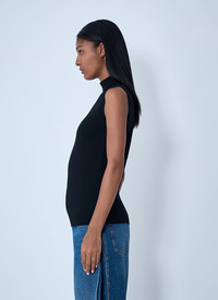 Sleeveless wool polo neck