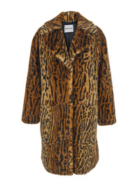 Stand Women 'Camille' Brown Coat With Wide Notched Revers And All-Over Leopard Motif In Ecofur Woman