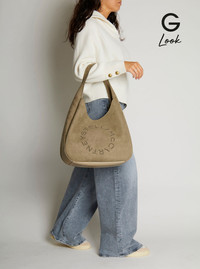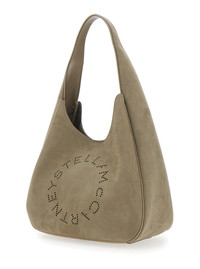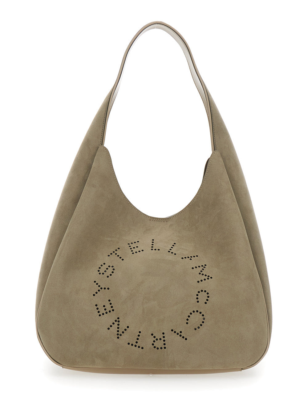 Stella Mccartney Women Beige Shoulder Bag With Maxi Logo Lettering On The Front In Ecosuede Woman