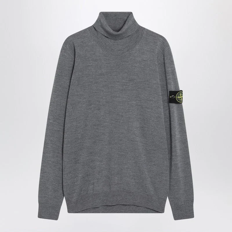 Stone Island Gray Wool Turtleneck Sweater Men