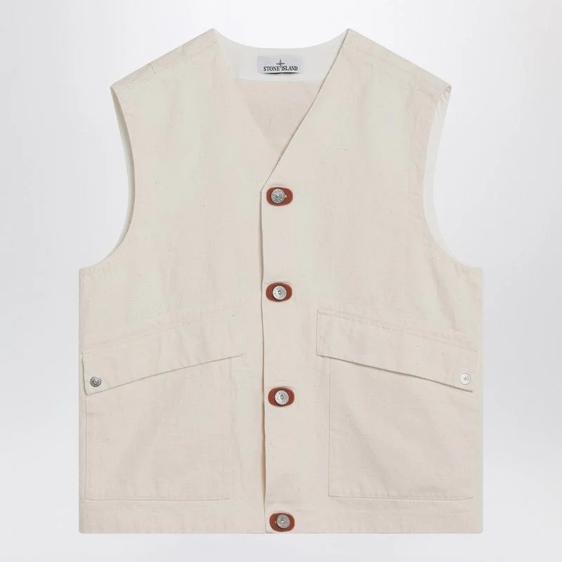 Stone Island Ivory Cotton Vest Men