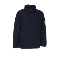 Logo-Appliquéd Padded Micro Twill Hooded Field Jacket Navy