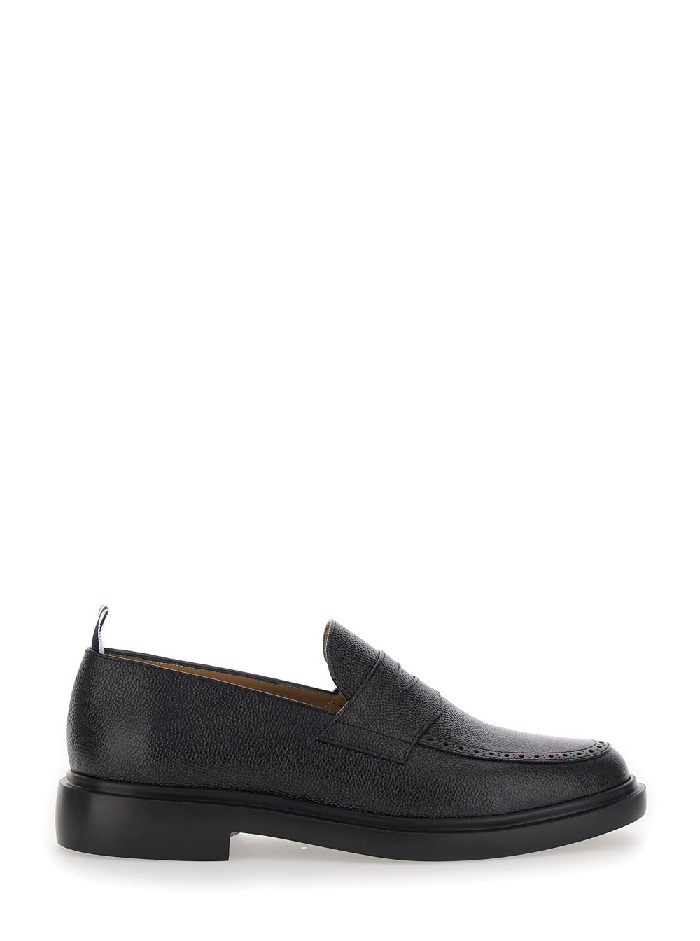 Thom Browne Men Black Slip-On Loafers With Loop Detail In Leather Man