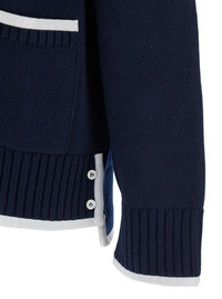 Thom Browne Men Blue Cardigan With V Neck And Maxi Logo On The Sleeve In Wool Man