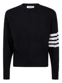 Thom Browne Men Classic Crewneck Short Pullover With White 4 Bar Stripe In Cashmere