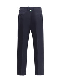 Thom Browne's Melbourne cotton Pants are a stylish design with a straight-leg cut that gives a refined silhouette. The front closure consists of a hook, button and zipper for a secure and stylish fit. Two side welt pockets and two buttoned back welt pockets offer practicality and a touch of class. The iconic tricolor patch applied to the back adds a distinctive brand detail. With a high waist, these pants combine classic elegance and modernity, perfect for a sophisticated and timeless look. Size Type: NUM SKU: MTU335WF0576415 Our Products Are 100% Genuine. In All Cases We Stand By The Authenticity Of Every Product Sold On Our Site. All sales are final and we only accept returns for quality issue. Buyer is responsible for any import tax/duty if applicable.