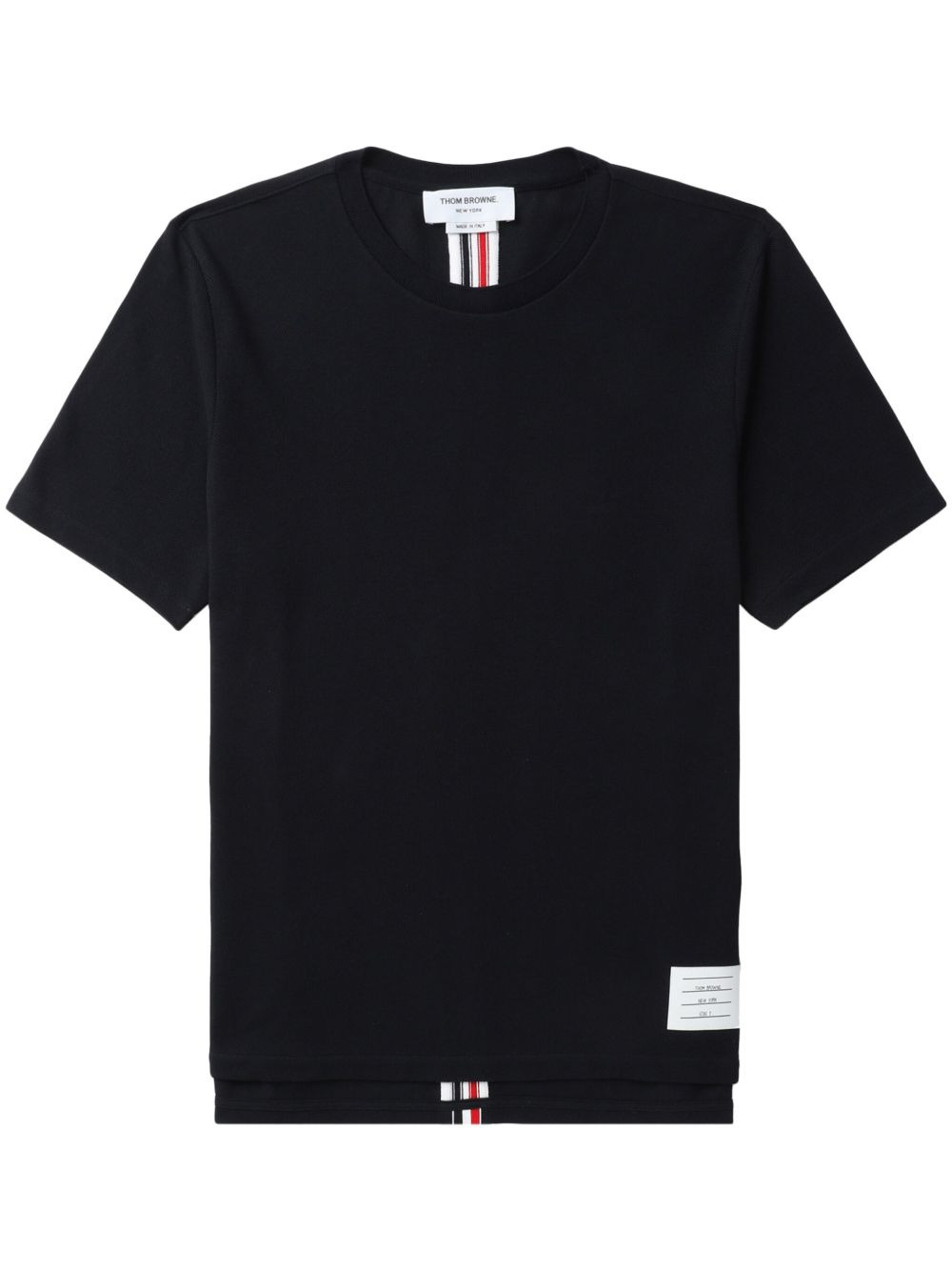 Navy Cotton Pique Center Back Stripe Relaxed Fit Tee