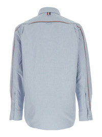 Thom Browne Men Light Blue Shirt With Button-Down Collar And Striped Rwb Detail On The Rear In Cotto