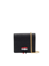 Thom Browne Women 3-Bow Card Holder W/ Chain Strap In Pebble Grain Leather - L12, H13, W3