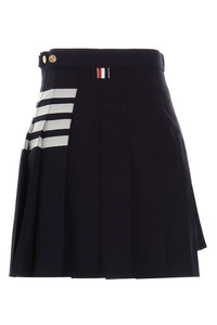 Navy Plain Weave Mini Pleated 4-Bar Skirt