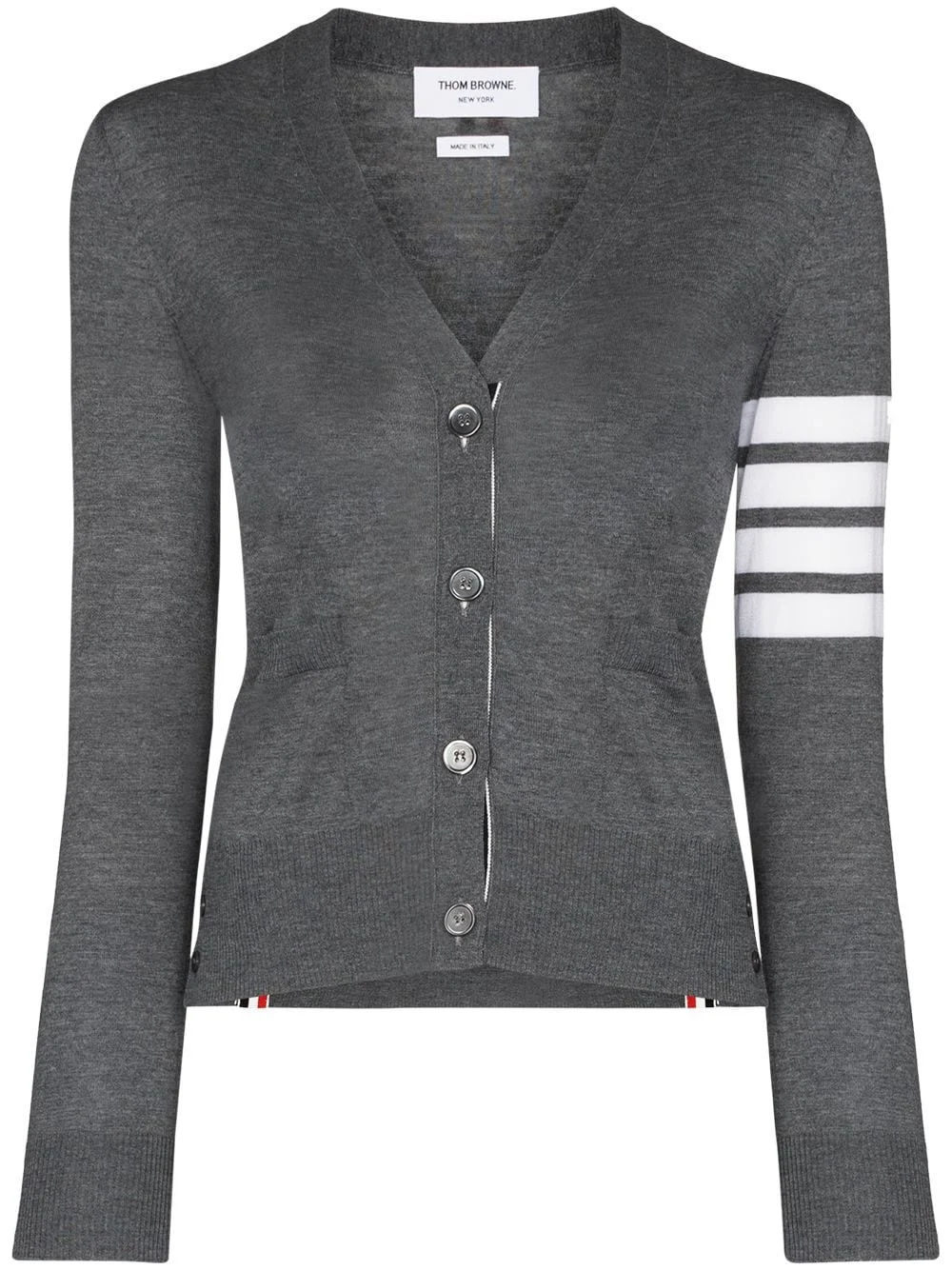 Medium Grey Cotton Crepe V-Neck 4-Bar Cardigan