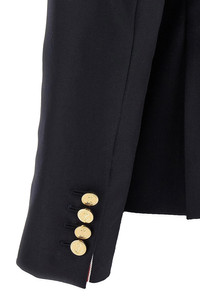 Single-breasted wool blazer with front button closure, mirror lapels, chest pocket, flap pockets, striped print lining, structured shoulder strap, long sleeves, back vents. Color: Blue Size & Fit: true to size fit Composition: 100% wool Made in: Italy SKU: FBC010V00626415 Our Products Are 100% Genuine. In All Cases We Stand By The Authenticity Of Every Product Sold On Our Site. All sales are final and we only accept returns for quality issue. Buyer is responsible for any import tax/duty if applicable.