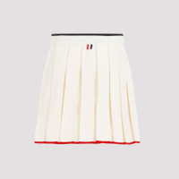 Thom Browne White Virgin Wool Full Needle Stitch Mini Pleated Skirt. Crafted in virgin wool, polyamide and elastane blend. Black trim on the waist, pleated design, red and blue stripes on the back strap, straight hem, red stripe on the hem. Wool | 83%VIRGIN WOOL 15%POLYAMIDE 2%ELASTANE Size Type: IT SKU: FKK132BY1037White Our Products Are 100% Genuine. In All Cases We Stand By The Authenticity Of Every Product Sold On Our Site. All sales are final and we only accept returns for quality issue. Buyer is responsible for any import tax/duty if applicable.