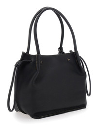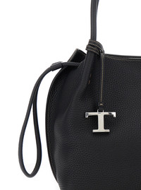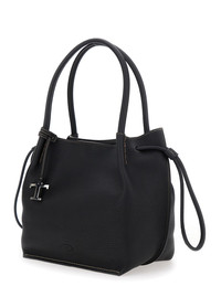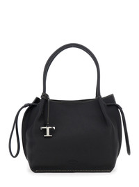 Tod's Women Black Shoulder Bag With Two Top Handles And Drawstring Closure In Grained Leather Woman